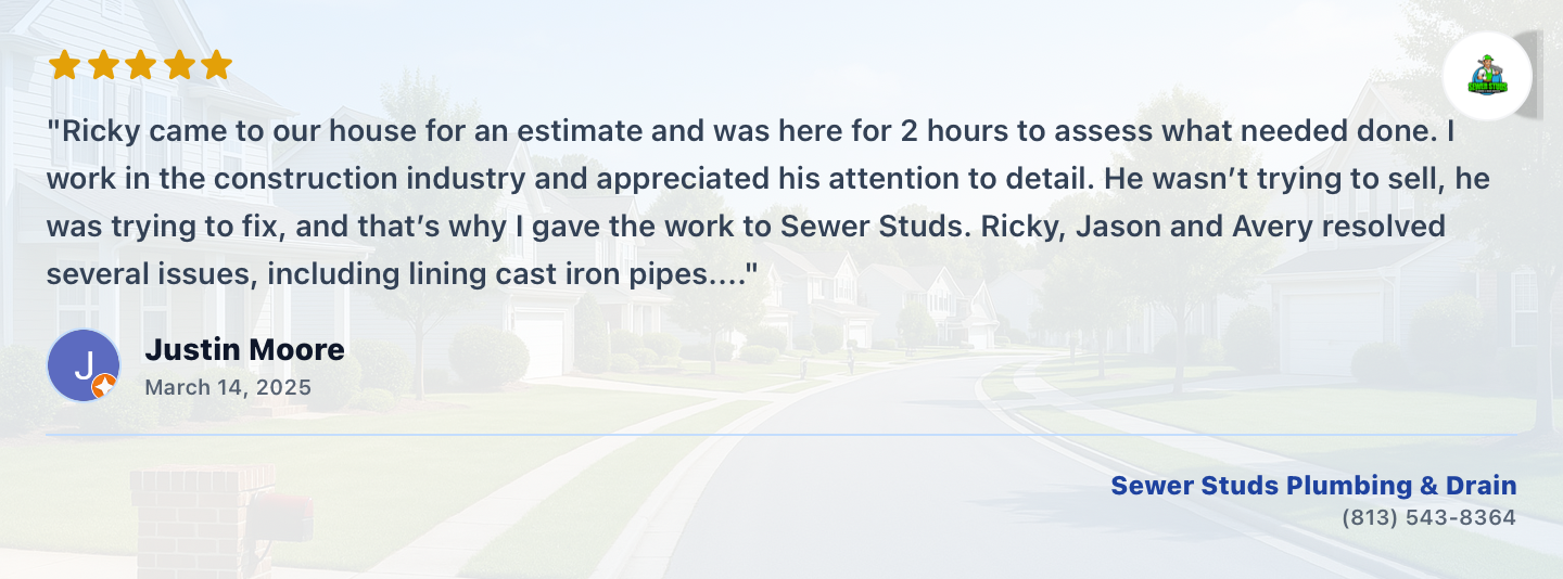 When plumbing problems hit, you need a plumber in Tampa, FL who shows up fast, fixes it right, and treats your home with respect. That’s exactly what Sewer Studs delivers.